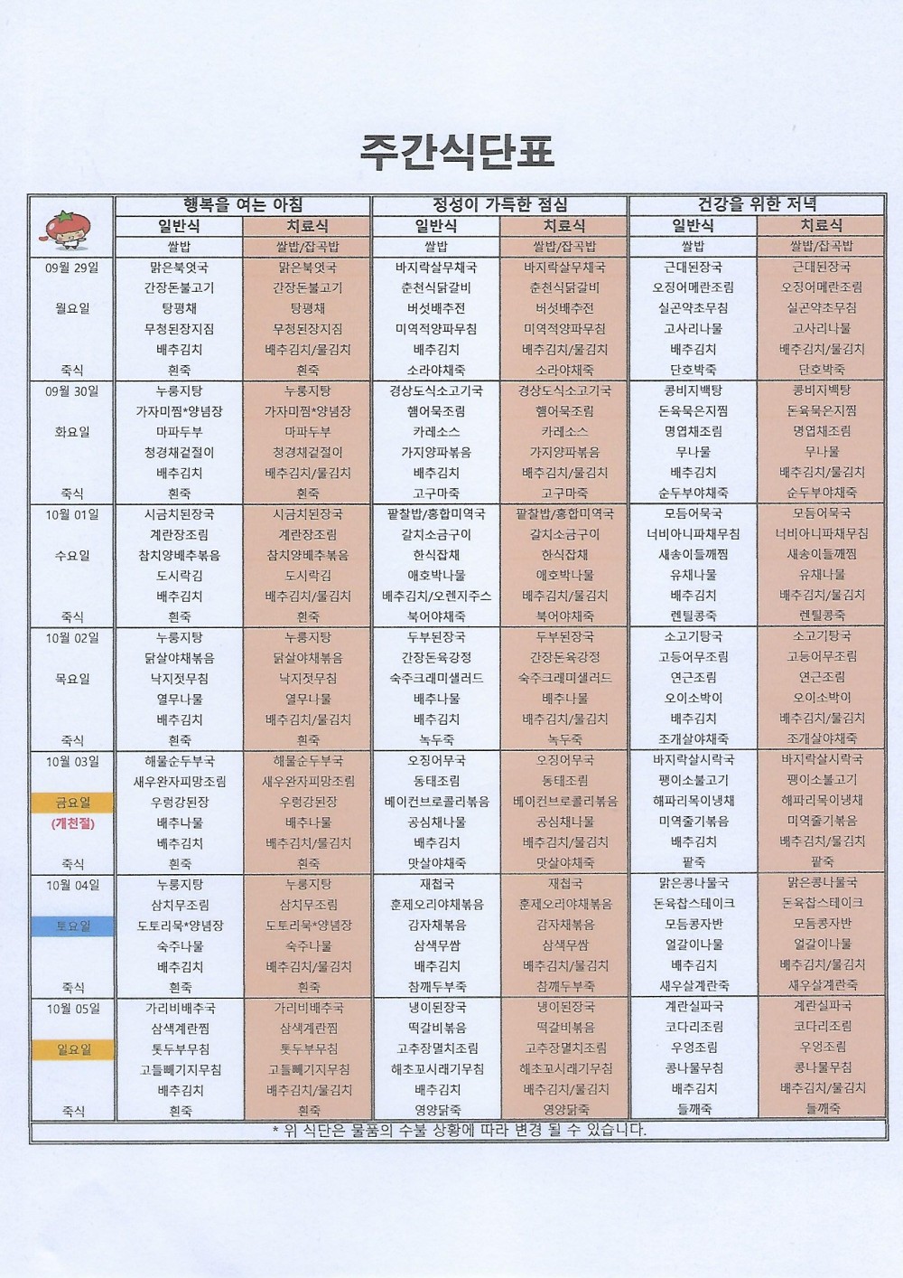 마산 더편한요양병원 #9월 다섯째주식단표 페이지 정보 작성자 관리자 댓글 0건 조회 44회 작성일 25-09-29 09:58 목록 본문 안녕하세요 마산 더편한요양병원 주간식단표 알려드립니다^^*저희 더편한요양병원에서는 대학원 석사를 취득한 임상영양사가 건강하고 맛있는 식사를 제공하고 있습니다. 댓글 0 댓글목록 등록된 댓글이 없습니다.