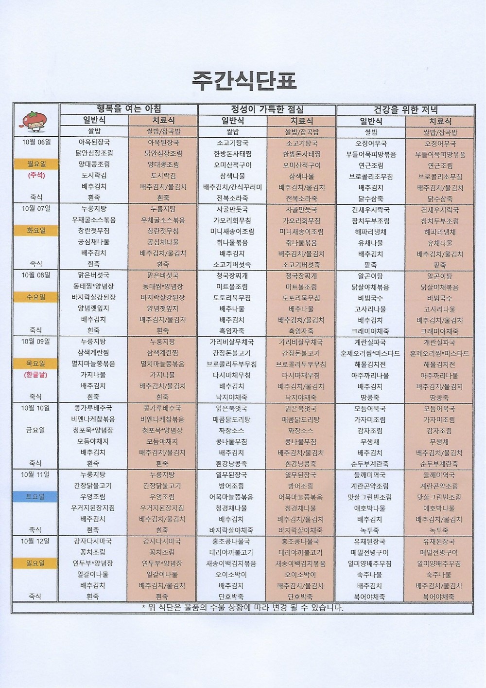 마산 더편한요양병원 #10월 첫째주식단표 페이지 정보 작성자 관리자 댓글 0건 조회 45회 작성일 25-10-06 08:00 목록 본문 안녕하세요 마산 더편한요양병원 주간식단표 알려드립니다^^*저희 더편한요양병원에서는 대학원 석사를 취득한 임상영양사가 건강하고 맛있는 식사를 제공하고 있습니다. 댓글 0 댓글목록 등록된 댓글이 없습니다.