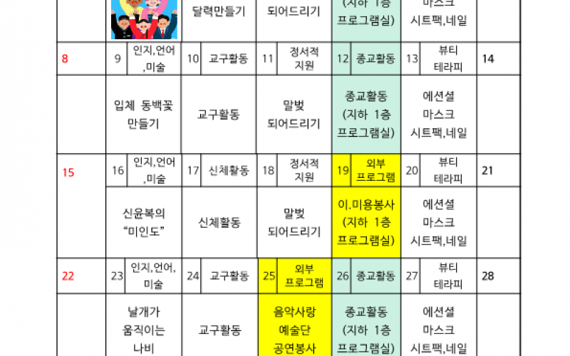2월 프로그램 일정표입니다.