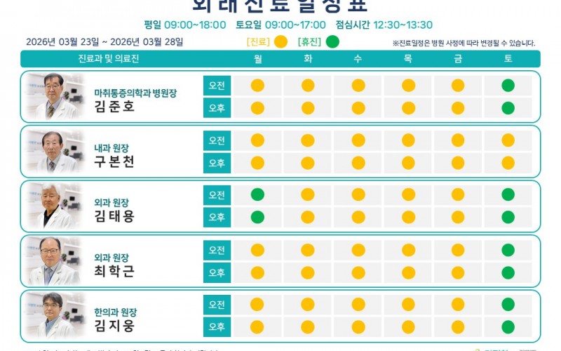 26년 3월 첫째 주 외래진료일정표