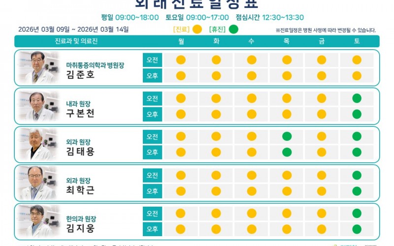 26년 3월 둘째 주 외래진료일정표